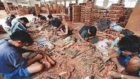 生漆工艺耗时耗力,为大量减缩成本追求极大利益的低价“红木家具”商家自然不会采纳,而用廉价的化学漆代替传统生漆,再用机器,快速上漆,加快生产力。