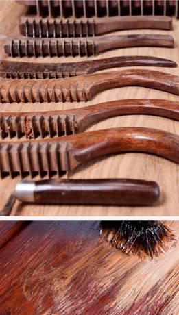红木家具外表之所以光亮细腻,与家具的用漆和上漆工艺息息相关,为保证家具用料的安全性,保证家具外表色彩饱满光鲜,通常,上漆时会采用传统的生漆工艺。