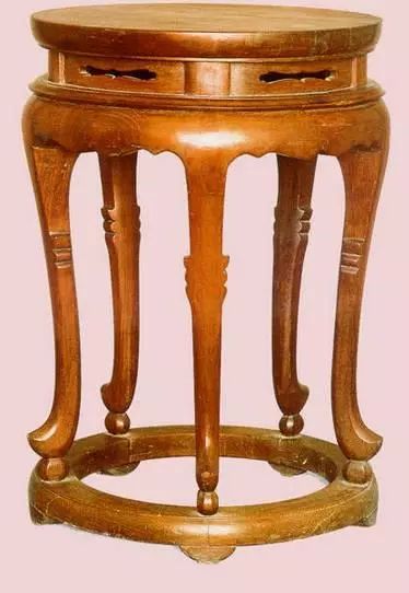 凳墩:總體造型大致延續明式風格形式,但有地區的區別:廣式部外裝飾和變化比較大;京式則繁縟雕琢並出現銅飾件等方法。