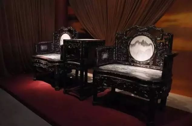 清紫檀木嵌寶鑲大理石桌椅