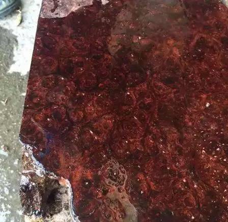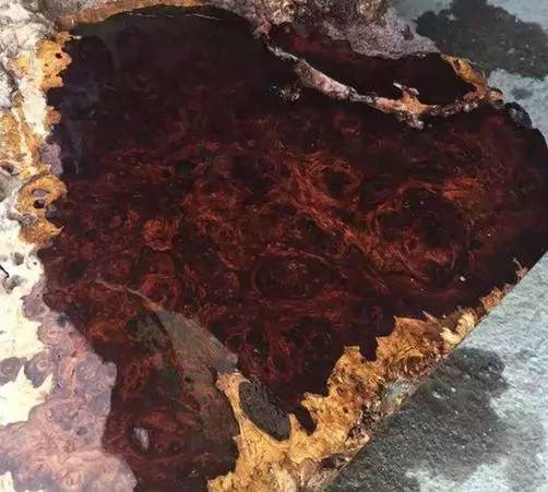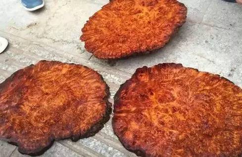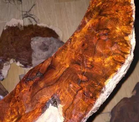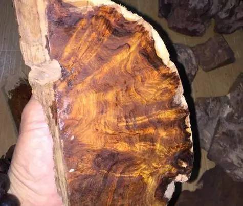 这么一大坨,看起来让人很不舒服,其实这是越南爆满瘤疤料,此种木材纹理非常特殊,能够开出有旋转的细密花纹,数量较少属于极为稀缺的木材,这就来看看开料后是什么样的吧!