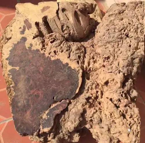 这块看起来与石头差不多的料子,玩友们能想到这块料竟然是花纹爆美的黄花梨吗?