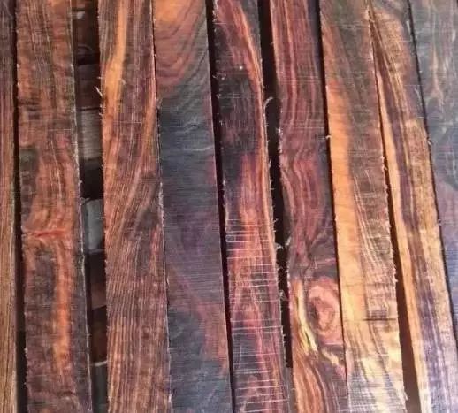 1、毛揽仁树:使君子科榄仁树属,俗称锦兰木。颜色较深者冒充黑酸枝,颜色较浅者上点色冒充鸡翅木,俗称“越南鸡翅木”。
