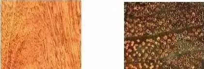 印度紫檀并不是紫檀木,紫檀木材结构甚细至细,心材红紫,而像印度紫檀这类花梨木平均管孔弦向直径不大于200微米,心材材色红褐至紫红,常带深色条纹,非常明显。