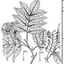 大乔木,高可达15~ 30m,直径0.9m,主干常具凹槽,距地面7m高左右常分枝,心材浅红褐色,具深浅相间条纹,木材具光泽,新鲜切面略具香气,久则消失,滋味不明显或略苦,强度高,为生产红木家具的良材,常生长在沿河两岸及干旱地区。主产伯利兹。