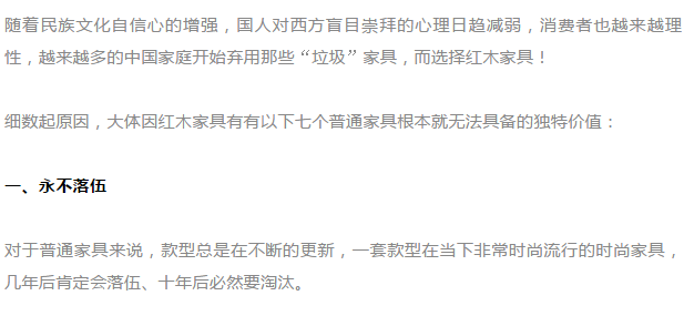 从某种意义上讲红木家具也是 对现今大量生产,大量消费,用了就扔的消费文化方式的一种否定。