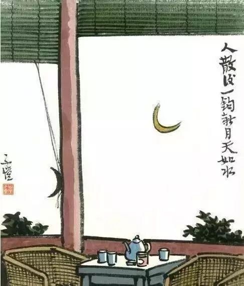 然春梦不再,盛宴终散,夜雨蓬窗人去楼空,仅剩断垣残墙,或一桌一椅一壶而已。为此想起丰子恺先生的一幅漫画“人散后,一钩新月天如水”,使人怅然无语,浮想联翩。