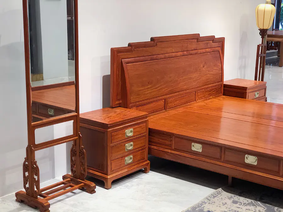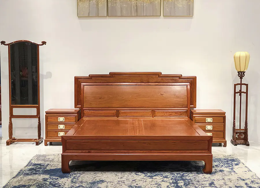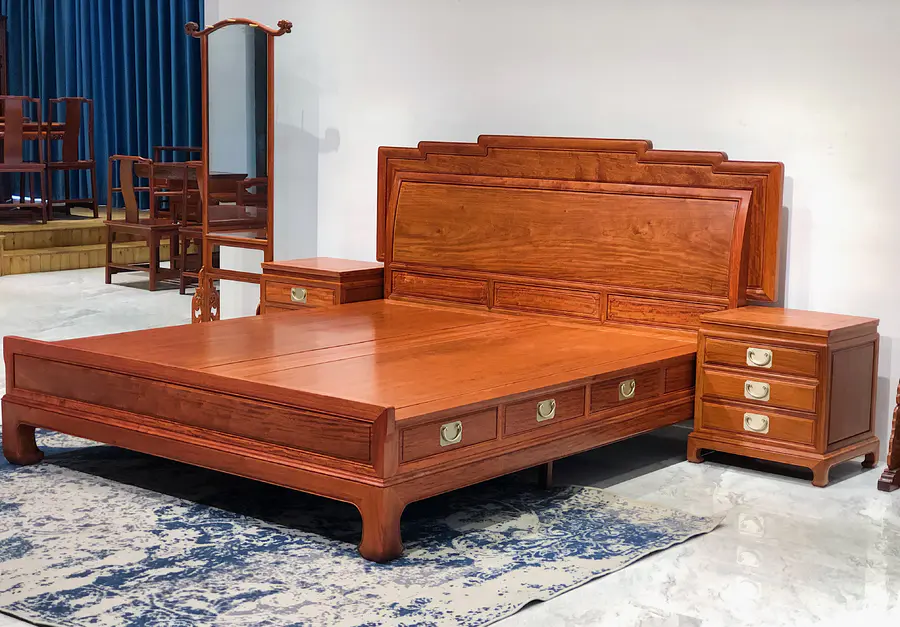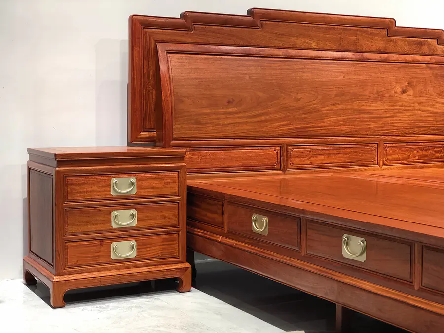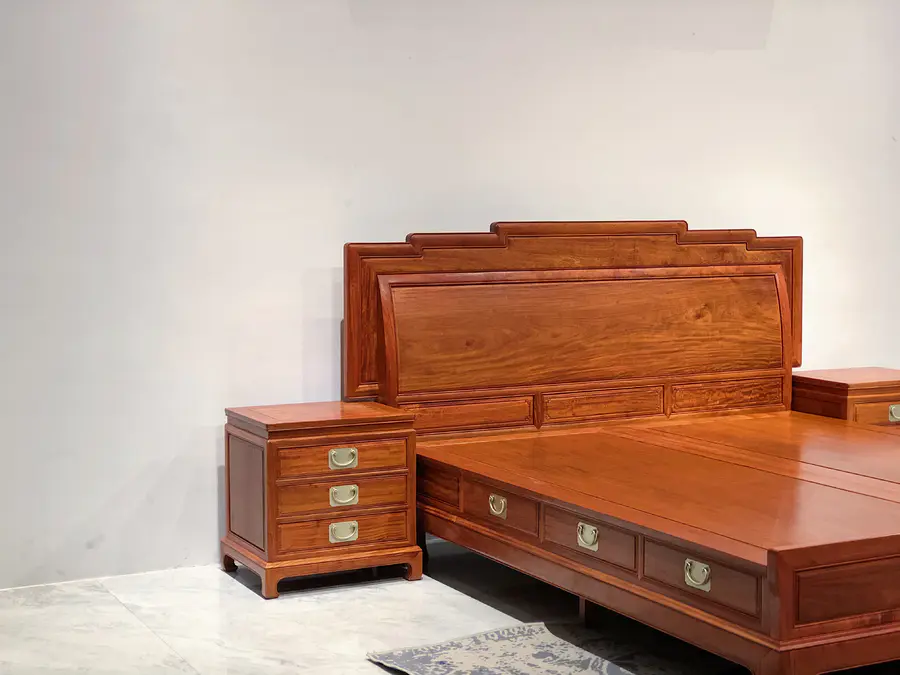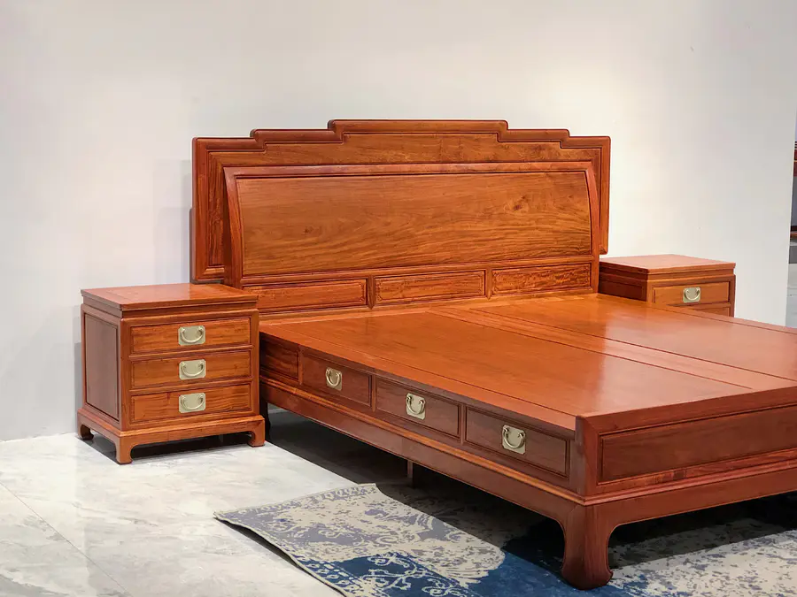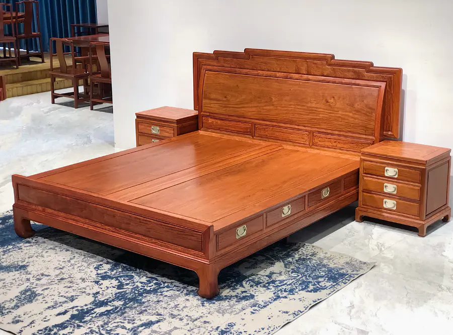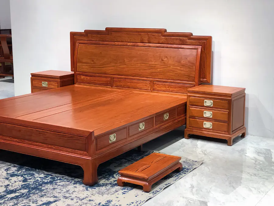 缅甸花梨步步高升高低床